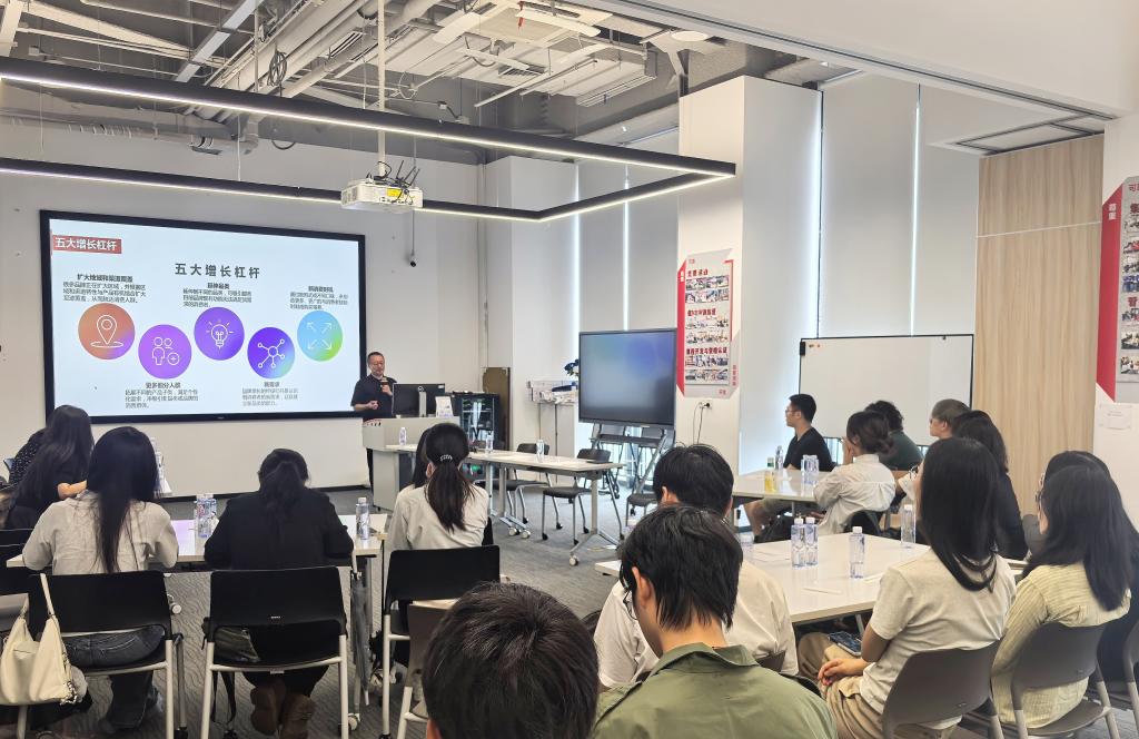 值得买科技市场部负责人许荻晔向师生们介绍了值得买科技的发展历程与业务解读,同学们了解到值得买科技从创始人隋国栋的个人博客起步,到2019年成功上市,始终坚持“让每一次消费呈现幸福感”的使命,并将“成为全球最懂消费的科技公司,创造人人因消费而幸福的美好世界”作为企业愿景。值得买科技公司通过“AI与内容”引领,不断为公司发展注入创新活力。将“什么值得买”平台打造AI智能体“张大妈”,精准连接消费者与优质商品,让消费者提高消费幸福感。