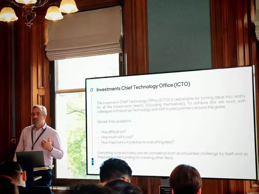国际知名资产管理公司Aberdeen 的参访更是直击金融领域核心。企业管理层根据主题分享了“AI驱动的投资决策系统”“数字化风险控制模型”等内容,不仅精准解答了学子关于“AI如何重塑金融服务”的疑问,更为中国金融机构的数字化转型提供了极具价值的国际参照。