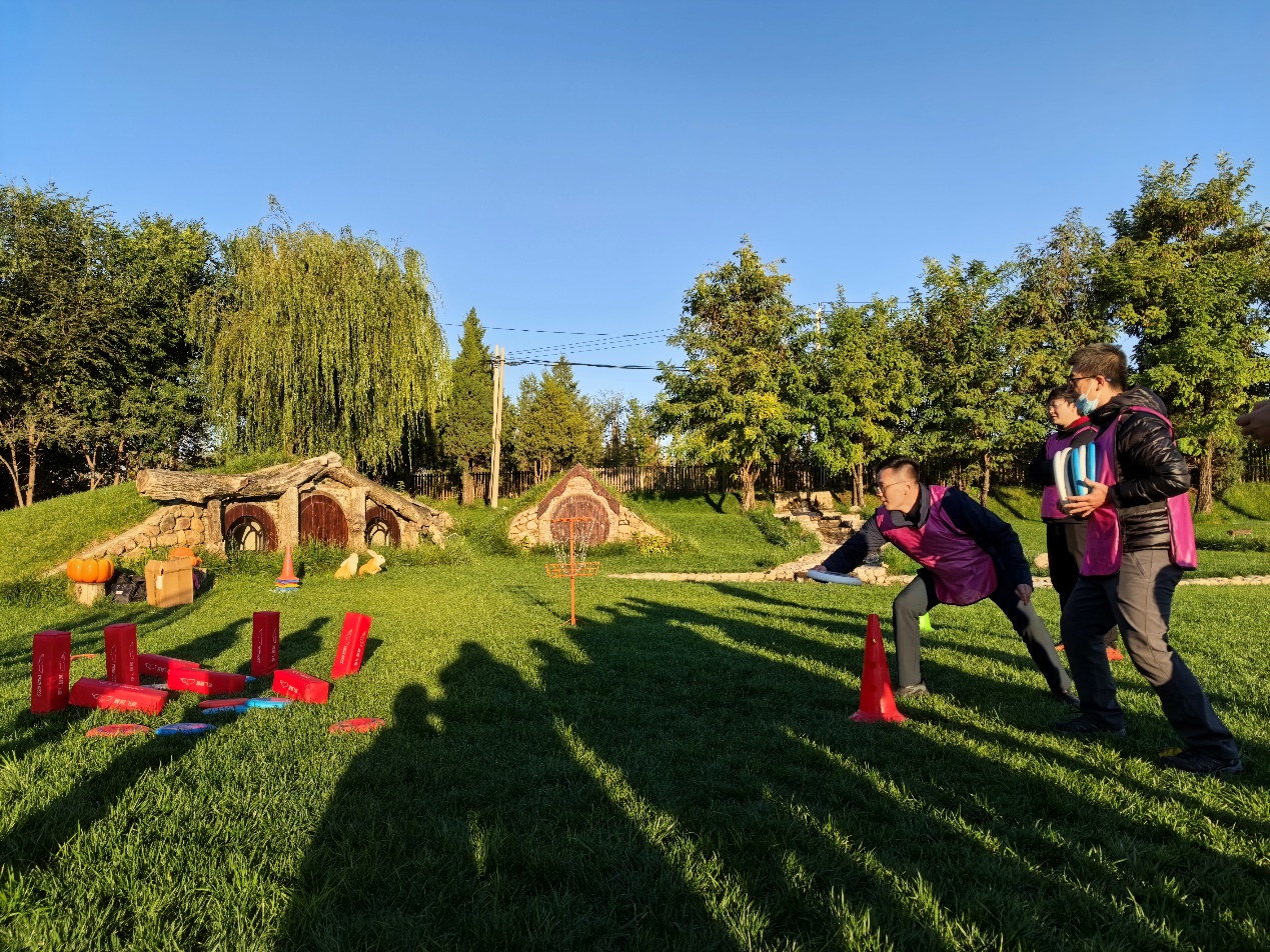午餐过后,备受期待的团建活动正式拉开帷幕。在专业营地老师的耐心指导下,活动首先开展了热身互动环节。大家排成队互相为身边的伙伴按摩放松,缓解旅途的疲惫,共同的呐喊瞬间消解了午后的困倦,模仿模特步的小惩罚更是让大家忍俊不禁,欢快的笑声在营地的上空回荡。