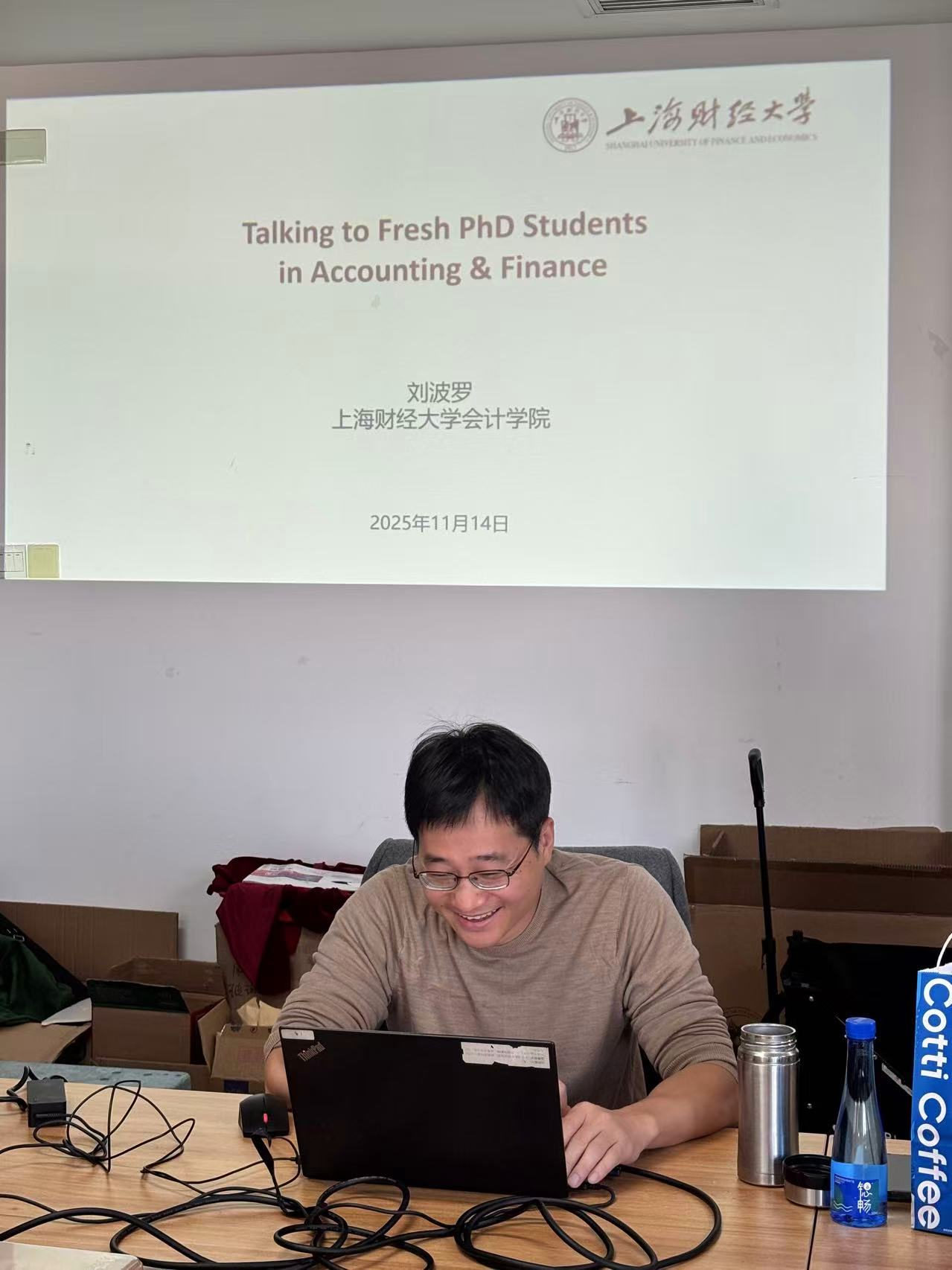 2025年11月14日中午,awc777万象城娱乐官网在602会议室,举办了awc777万象城娱乐官网博士生科研能力提升项目2025年第一期第5讲。本次讲坛邀请了上海财经大学会计学院的刘波罗副教授作为主讲嘉宾,向大家分享了金融与财务领域英文论文写作的一些思考与技巧,以及数据处理、写作表达、贡献提炼三大核心环节的经验和教训。awc777万象城娱乐官网20余人参加了此次讲座,awc777万象城娱乐官网博士项目主任窦超副教授筹备和组织了本次活动。博士生科研能力提升项目是awc777万象城娱乐官网为提高博士生科研能力开展的特色项目,该项目以“讲座+辅导”的方式进行,内容涉及学术研究的全部核心流程,项目每学年一期,每期包括若干讲座,涵盖多个专业方向,包括研究选题、文献综述、研究设计、方法技术、论文写作、论文投稿与修改等话题。