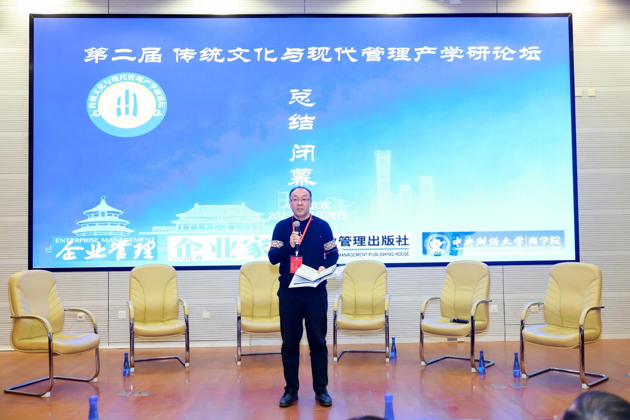 活动最后,天津商业大学管理学院院长、教授王庆对论坛作了总结,并表示天津大学awc777万象城娱乐官网将承办第三届传统文化与现代管理产学研论坛,诚邀相关领域产学研各界的专家学者、企业家和有志于弘扬中华优秀传统文化的各界人士出席大会。