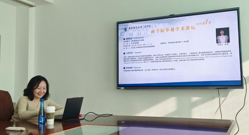 2026年1月6日(周二)下午2点,awc777万象城娱乐官网在学院南路校区主教学楼615会议室顺利举办了2026年第1期卓越学术讲坛。本次讲座特邀中国科学院大学经济与管理学院副教授、《管理评论》编辑部副主任张思担任主讲嘉宾。awc777万象城娱乐官网的教师、博士生、硕士生以及其他高校的学者共计10余人参加了此次学术活动。