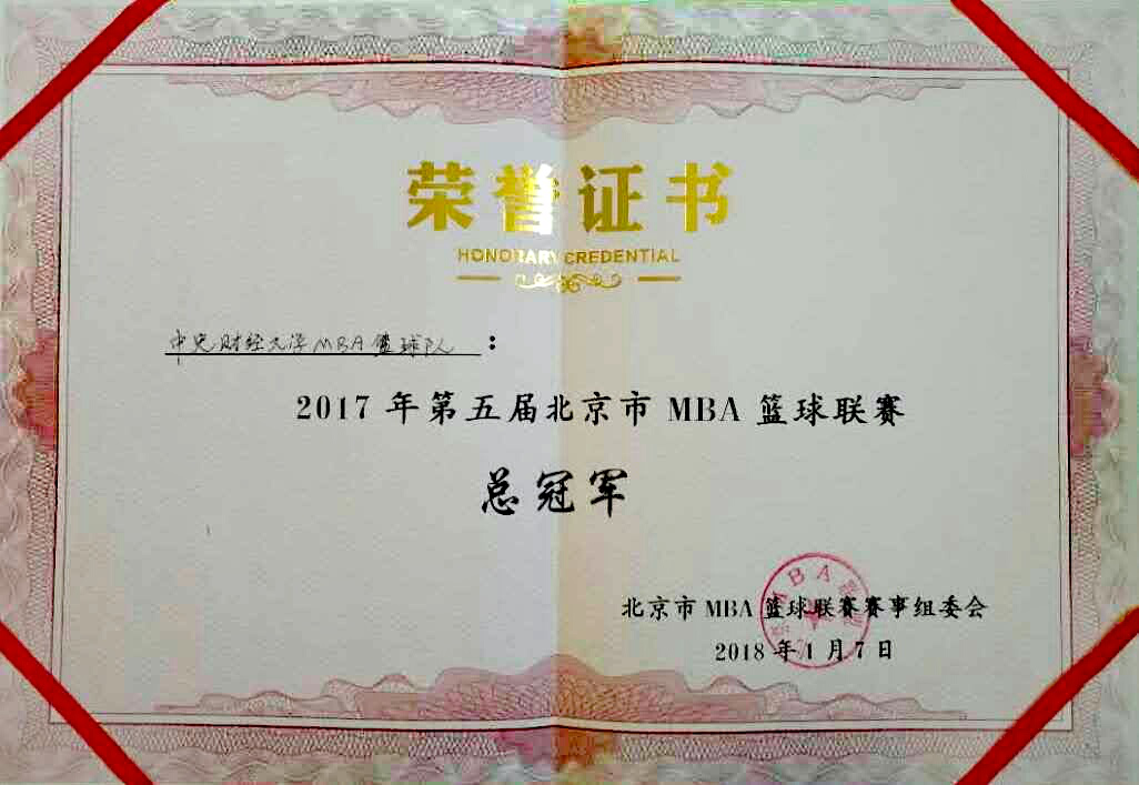 第五届北京市MBA篮球联赛总决赛暨闭幕式于2018年1月7日18时在北京进化工厂球馆盛大举行。我校MBA篮球队凭借更优秀的团队配合、更顽强的斗志、更高的竞技水平战胜北京交通大学MBA篮球队,勇夺本届篮球联赛总冠军。该成绩是我校MBA在历届北京MBA篮球联赛中取得的最好成绩。