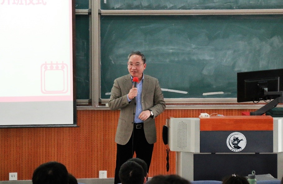 图为营销系副主任李季老师介绍新一届大数据菁英班课程