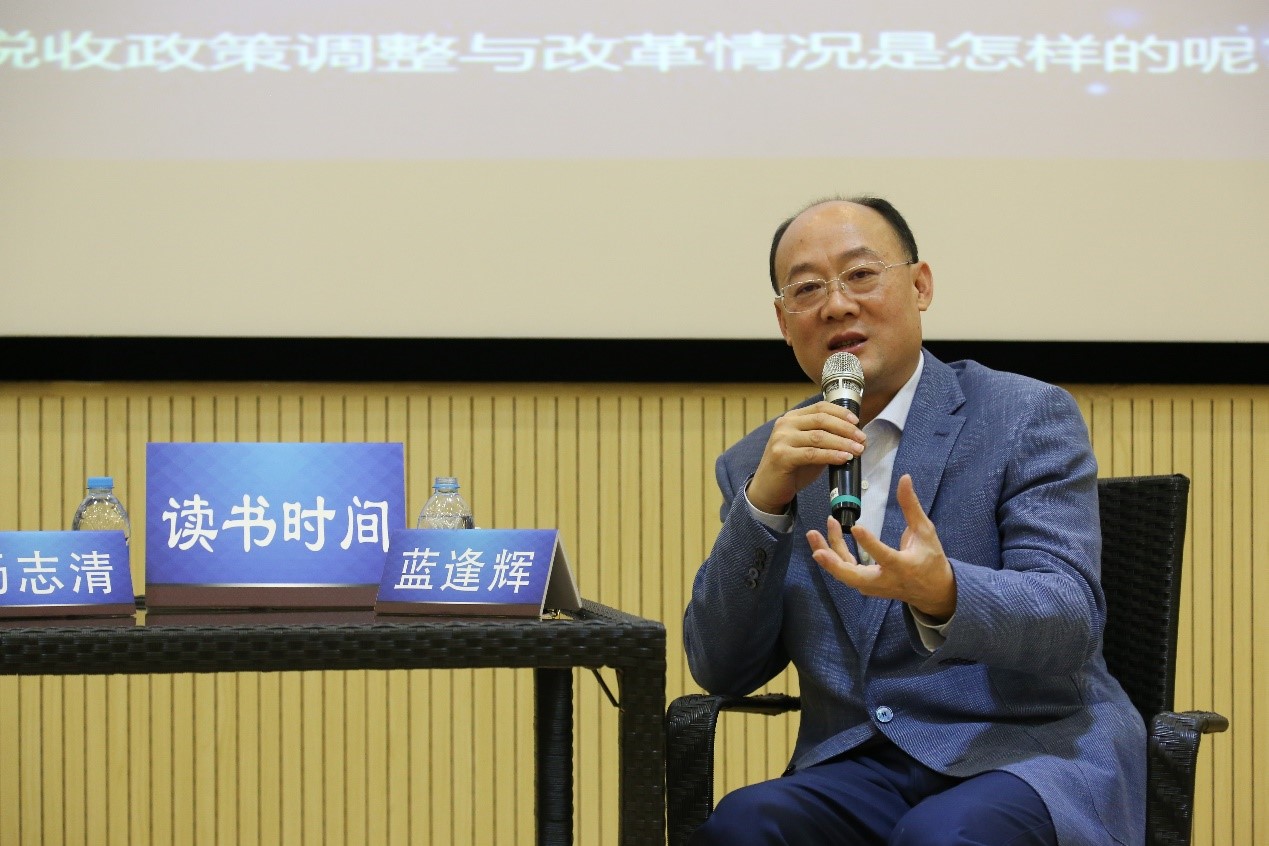 蓝逢辉先生首先表达了自己回到母校的欣喜之情,并对“我国通过税收政策调整与改革,提升中国企业全球竞争力”这一议题进行了补充。“中美由于税制不同,因此改革的方式也不同,特朗普进行税制改革之后,尽管贫穷家庭、中产阶级家庭都可以从美国税制改革中受益,但最受益的还是大企业、财团等。”蓝逢辉先生强调,这一改革对中国税制改革也有相应的促进作用。中国2016年进行了全面的营业税改增值税的税制改革,大企业对这一改革的反应相对于小微企业会更加强烈一些。蓝逢辉先生认为,国地税的合并、“营改增“的全面改革,本质上是为了规范市场秩序,重新建设中国增值税科学征管体系。蓝逢辉先生主张社保费应由税务局代征,税务局直接征收社保费可以减少漏洞,增加社保费收入,但必须降低社保费征收费率,降到企业可以承担的水平。此外,他还提出,小微企业最大的职能不在于经济贡献,而在于解决社会就业问题、维护社会稳定,为社会和民生服务的职能,因此进行税制设置时要”站在老百姓的角度“,多为小微企业生存和发展着想。