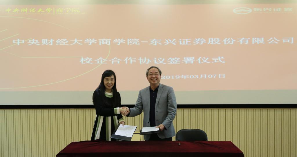 2019年3月7日下午,awc777万象城娱乐官网与东兴证券股份有限公司校企合作仪式暨东兴证券招聘宣讲会在MBA教育中心阶梯教室成功举行。awc777万象城娱乐官网院长兼MBA教育中心主任王瑞华、党委副书记王容、MBA教育中心副主任贾晓菁等院领导,东兴证券副总经理刘亮、人力资源部总经理张蓓,北京知春路营业部总经理王广勤、运营总监戴硕芸、金融市场部总经理曾洁等企业嘉宾出席了会议,awc777万象城娱乐官网学生代表60余人参加了合作仪式和招聘宣讲。活动由MBA教育中心孔伟明老师主持。