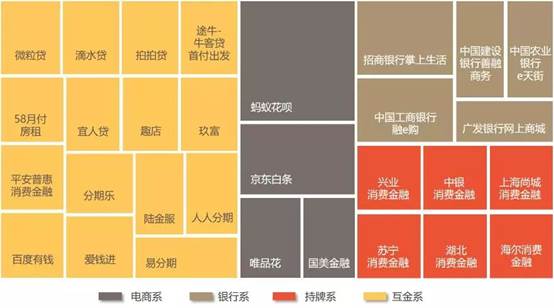 目前,消费金融品牌按照机构的性质来看,已经形成了银行系、持牌消费金融公司系、电商系、互金系四大类型的多元化格局,提供差异化的消费金融产品和服务。差异化主要体现在消费场景上,各消费金融品牌依托线上线下的消费场景,涵盖了数码3C、家具家电、医疗保健、装修、旅游等等,满足了消费者多样化的消费信贷需求。