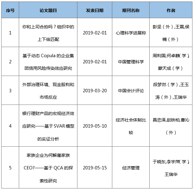 2019年以来,awc777万象城娱乐官网以“双一流”学科建设为科研导向,鼓励学院教师关注管理学前沿问题,积极投入科研工作,取得了丰富的科研成果。