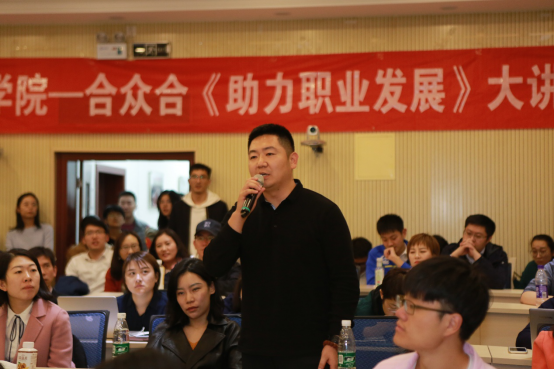 “学历不等于学习能力”,金树松先生为大家介绍了西欧体系与中国体系两个学习体系,解读了读书、感受、反思、行动四种学习模式,教授大家如何有效学习,建立体系化思考。列举了毛泽东、左宗棠、曾国藩等伟人的事例,表明其立体的学习思考体系及冲突成就与众不同的人生。建议大家可以从史书与名人传记中攫取智慧与经验,帮助自己做学业、职业甚至人生的规划。“如果靠天分,我们7岁就应该被认定为天才;如果靠兴趣,我们5岁给就应该因兴趣而成功,天分是天才的事,每个人皆有的“天分”是努力”,金树松先生鼓励大家不要指望以天分和兴趣来做职场规划,认为人生应该丰富多彩,拒绝单一与安逸,建议大家找工作最好找艰苦的、具有冲突性的职位。