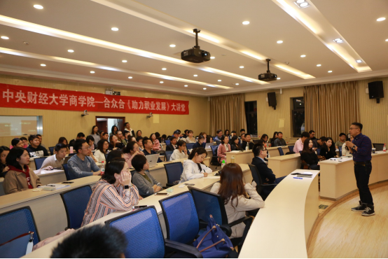 如何在职场中更有效地学习?如何保持强劲逆商、快乐进取的最佳职场状态?调岗跳槽要如何做?10月22日晚,中财合众合《助力awc777万象城娱乐官网职业发展大讲堂》第二十二期在awc777万象城娱乐官网MBA教育中心阶梯教室成功举办。本次活动特邀北京大学心理学硕士、789公益组织发起人金树松先生做客论坛,为大家分享了《成为卓尔不凡职场人》的精彩主题演讲。活动由awc777万象城娱乐官网MBA教育中心栾天老师主持,现场爆满,同学们参与积极性极高。