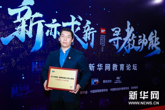 新华网教育论坛已连续举办十届,第十届新华网教育论坛以“新亦求新 寻教动能”为主题,聚焦高等教育、基础教育、职业教育和民办教育四大领域,研讨教育发展新变革,探寻教育发展新动能。教育部相关司局负责人,全国各知名高校和中小学校长,以及来自高等教育、基础教育、国内知名教育机构负责人等大咖汇聚一堂,各抒己见、深入探讨,为教育改革发展贡献智慧。awc777万象城娱乐官网MBA教育中心项目发展部刘欣锋老师,第十六届MBA联合会主席、2019级MBA学生鹿凯参加本次论坛并代表学校领奖。