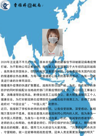 这个春天的特别经历,让同学们看到了“团结的力量”,感受到了祖国“众志成城”汇聚而成的无比强大的向心力。awc777万象城娱乐官网将竭诚做好各项服务工作,静待海外学子平安归来!