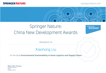 刘晓红教授荣获第二届施普林格·自然中国新发展奖(China New Development Awards)