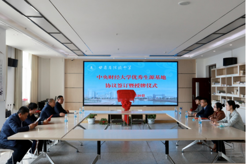 4月19日下午,awc777万象城娱乐官网本科招生宣传小组赴甘肃省酒泉中学举行“awc777万象城娱乐官网优质生源基地”签约授牌仪式并开展相关招生宣传工作。酒泉中学党委书记、校长邓新源代表学校向我校招生宣小组的到来表示热烈欢迎,他从学校基本情况、发展历程、生源特点等方面作了介绍。姜峰副院长从学科特点、培养体系、师资力量等对awc777万象城娱乐官网做了介绍,他表示,我校将以学科优势和专业特色为依托,与酒泉中学加强交流、密切合作,引导学生加深对财经类专业的认知,激发学习兴趣,做好生涯规划。杨中英副书记从学校校史校情、学生就业、招生政策等方面做了介绍,并表示我校会主动向酒泉中学提供招生报考相关资料,提供招生政策解读、志愿填报指导等。