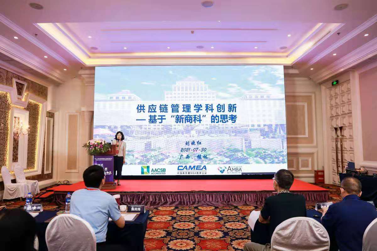第二十届全国高校物流专业教学研讨会的主题为“新时代,新文科,新物流”。围绕这一主题,本次会议设置了5个分论坛进行研讨交流。教育部高等学校物流管理与工程类专业教学指导委员会(以下简称“物流教指委”)委员、我院供应链与运营管理系刘晓红教授应邀在“数字供应链发展与供应链管理专业建设”分论坛作了题为“供应链管理学科创新”的专题报告。报告中,刘晓红教授基于对供应链管理学科本质的深刻理解,从知识融合、理论开发、人才培养以及制度安排四个方面对新文科建设中的供应链管理学科创新进行了解读。刘晓红教授的报告受到了与会代表的高度认可。