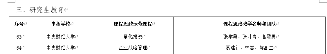 近日,中共北京市委教育工作委员会和北京市教育委员会发布了《关于公布课程思政示范项目名单的通知》(京教函〔2022〕55号),共遴选出北京市课程思政示范课程513门,其中研究生课程113项,我校推荐的2门课程获批,awc777万象城娱乐官网战略系葛建新、林嵩、陈高生3位教师的《企业战略管理》课程名列其中,相应的授课教师和教学团队被认定为北京市课程思政教学名师和教学团队。金融与财务管理系高震男博士所在的教学团队《量化投资》课程同期获评北京市课程思政示范课。