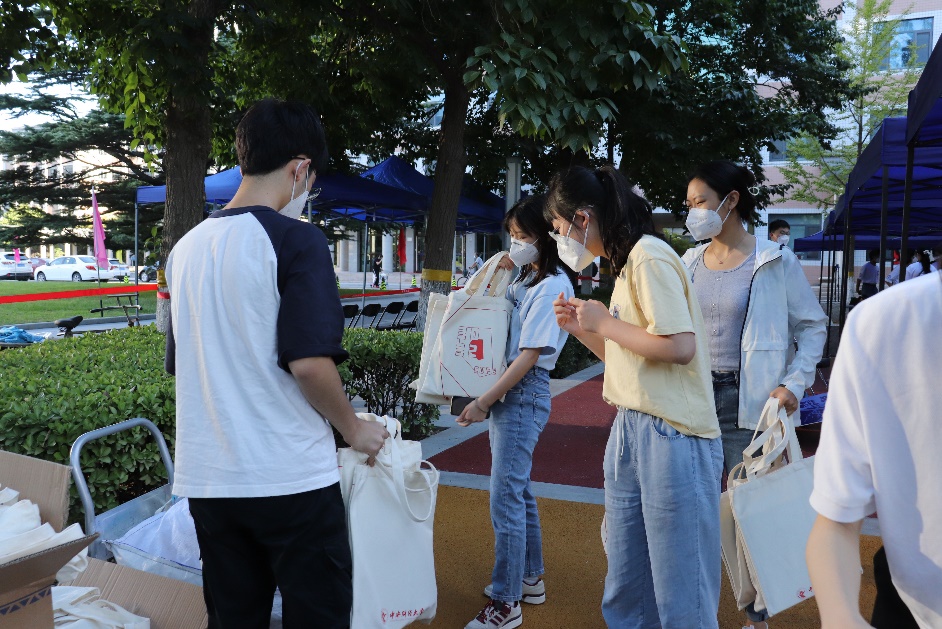 学四宿舍楼下的行李协助点,志愿者们期待新同学的到来