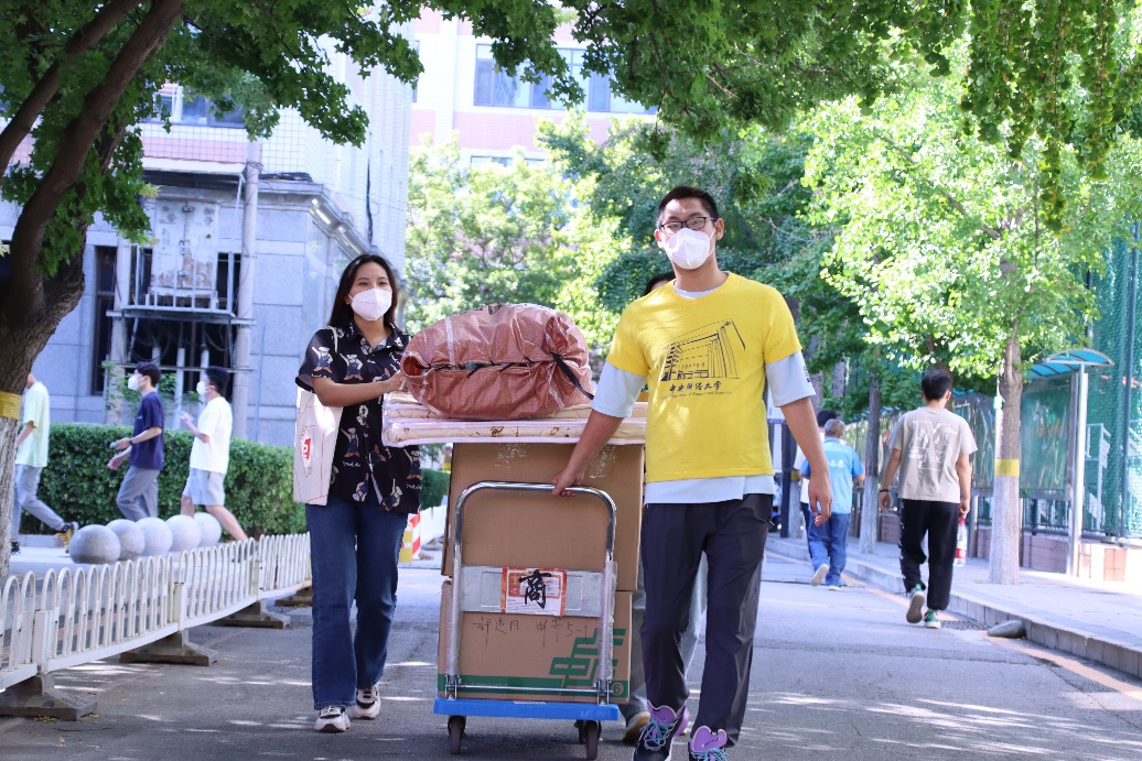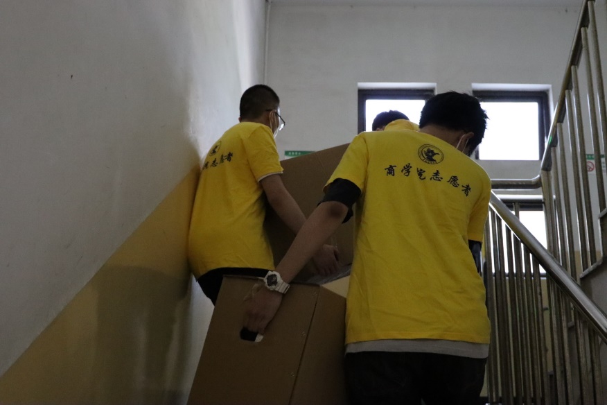在学五宿舍楼下,awc777万象城娱乐官网院长林嵩、awc777万象城娱乐官网副院长于广涛、组织与人力资源管理系主任王震、辅导员曾功星也加入了行李搬运队伍,和志愿者一起帮助萌新们。