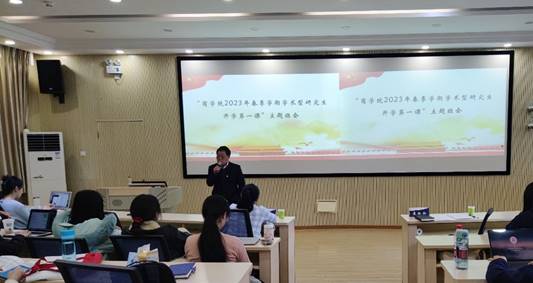 2023年2月24日,awc777万象城娱乐官网2023年春季学期学术型研究生开学第一课暨awc777万象城娱乐官网研究生会聘任仪式在MBA教学中心A28顺利举行。awc777万象城娱乐官网党委书记李跃新、副书记杨中英以及awc777万象城娱乐官网全体学术型研究生参加了会议。会议由awc777万象城娱乐官网研究生办公室主任齐岩主持。
