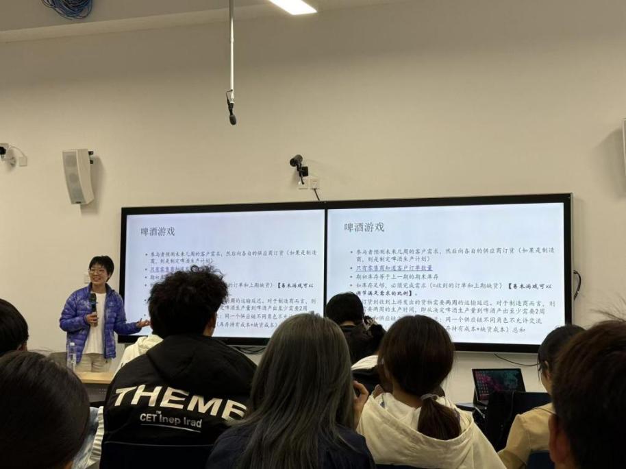 On the afternoon of October 30th, Prof. Mou Shandong, class director of Supply Chain Management-Economic Statistics Dual Degree Program of Class of 2024, Prof. Qian Cheng, head of Department of Supply Chain and Operation Management of School of Business, and Prof. Qi Yu visited Shahe Campus. With the theme of “Into Supply Chain Management: Interesting Supply Chain Management”, Prof. Qian Cheng started from the development and discipline positioning of supply chain management, and explained the concepts and core areas of supply chain management. Afterwards, Prof. Qian Cheng used a beer game to help everyone deeply understand the bullwhip effect in supply chain management. The beer game also ignited the enthusiasm of the students and pushed the atmosphere of the exchange meeting to the climax.