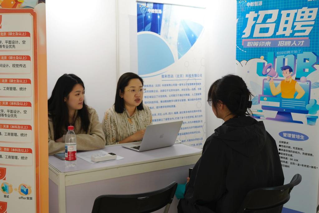 An enterprise exhibition area and an on-site communication area were set up at the job fair. In the enterprise exhibition area, all employers display the company's situation, corporate culture and job requirements through various forms such as exhibition boards and brochures, so as to facilitate students to understand and choose their favorite positions independently. In the on-site communication area, students actively communicated with enterprise representatives, in-depth understanding of job responsibilities and career development prospects, and showed professional foundation and practical ability to enterprise representatives. Employers also conduct preliminary evaluation and selection through student resumes and on-site communication performance, and the atmosphere at the job fair is warm.