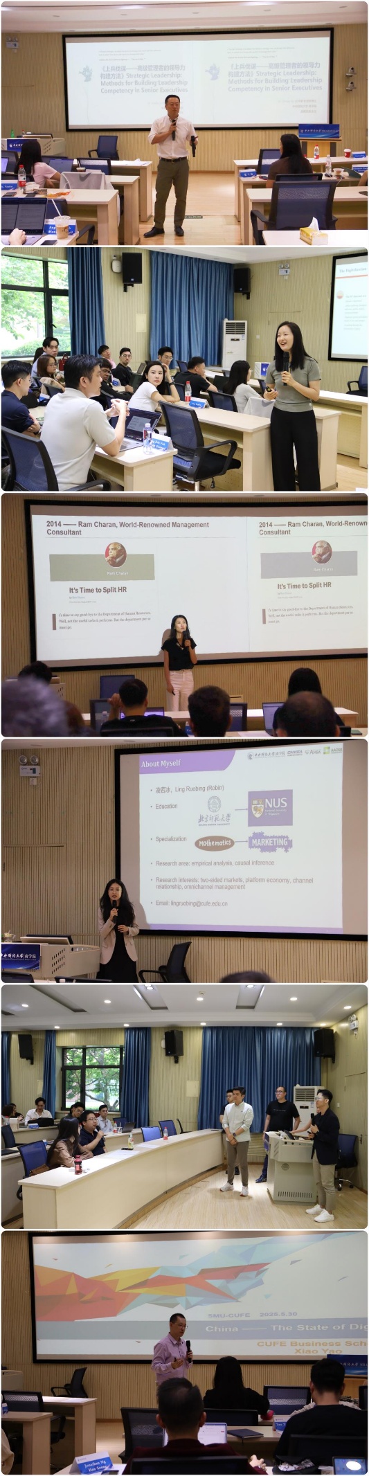 The visit of the SMU MBA teacher-student team marked the first official visit by a foreign university since the establishment of CUFE’s GEMBA exchange program, which is of far-reaching significance. The successful implementation of this program has effectively promoted the internationalization of MBA talent cultivation at CUFE Business School, laid a solid foundation for the further advancement of the GEMBA program, and earnestly fulfilled the school’s mission of "contributing new management knowledge and cultivating leaders with a global perspective, innovative spirit, and sense of social responsibility".