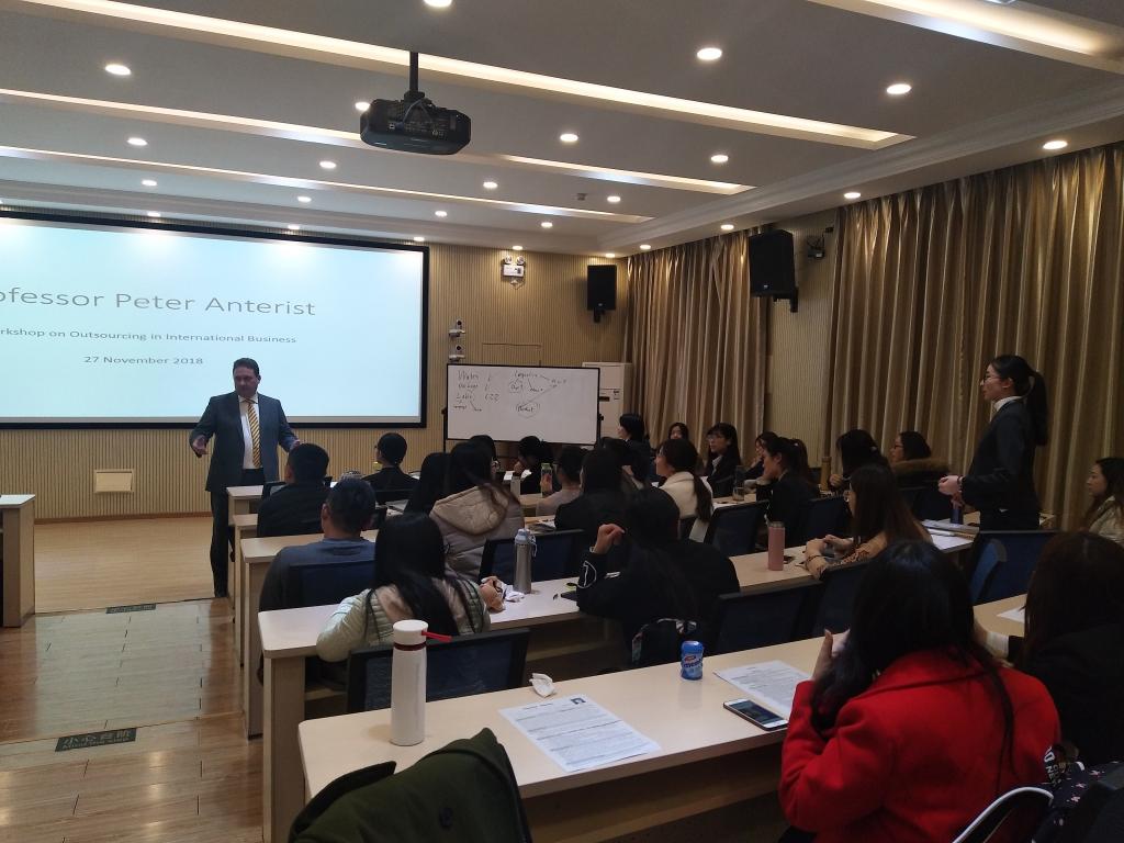 Professor Peter Anterist,CEO of InterGest Worldwide and Guest Professor of CUFE Business School,demonstrated cases in international business outsourcing and issues thatenterprises encountered in expanding overseas markets based on his experiencein international business and management. After the speech,ProfessorPeter Anteristand faculty and students discussed issues such as how toexpand overseas markets and the orderly exit of enterprise’s overseas operations,etc. on the basis of internationalization. The seminar was highly interactive. Studentsfrom CUFE Business School raised constructive questions which were highlyacknowledged by Professor Peter Anterist.