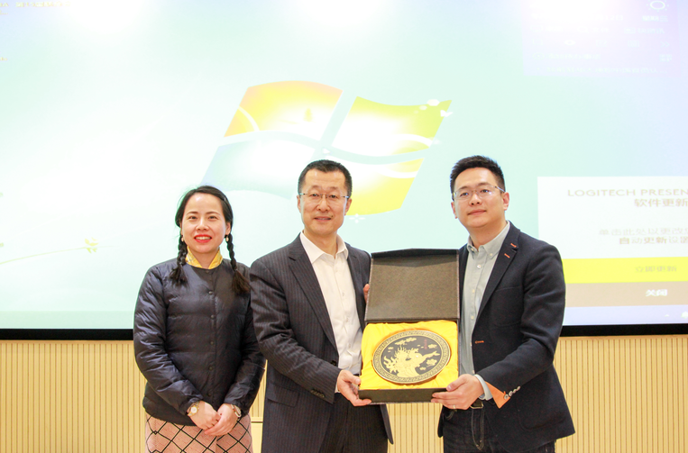 Afterwards,Mr. Luan Tian from MBA Education Centre and Ms. Rong Qiwen, founder of theBeijing Hezhonghe Inform and Tech Company awarded a CUFE souvenir to Mr. Fu.