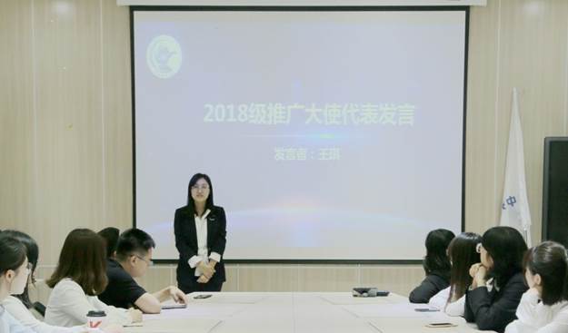 In the fascinating month of May, CentralUniversity of Finance and Economics (CUFE) successfully held the 2018-2019 CUFEMBA Campus Ambassador Handoff Ceremony at Room A02 of the MBA Education Center.Professor Jia Xiaojing, Deputy Director of the CUFE MBA Education Center, andteachers from the Project Development Office, including HuangJixin, Luan Tian and Liu Xinfeng, attended the occasion upon invitation. Headof the 2019 campus ambassador group Wang Yuanyuan presided over the event.