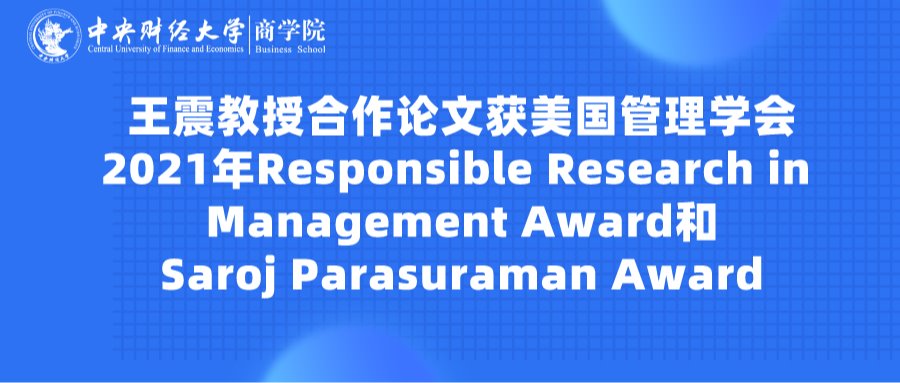 awc777万象城娱乐官网王震教授合作论文获美国管理学会2021年Responsible Research in Management Award和Saroj Parasuraman Award